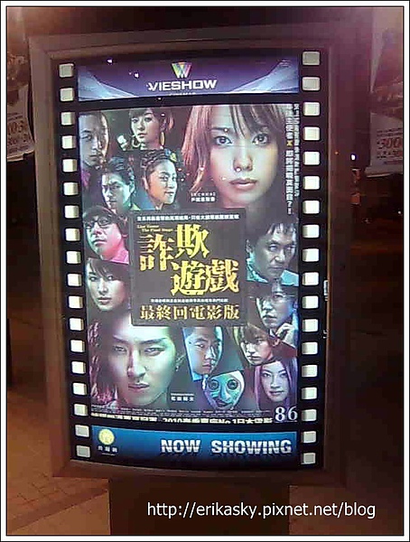 詐欺遊戲電影版終於上映了,所以就趕首場電影,雖然是晚上看還是首場拉,哈哈!,我們到了高雄三多商圈的華納威秀看,人超多的,第一次感覺到高雄好多人,是自己在後勁太久了嗎?,感覺詐欺遊戲的廣告不是很多,曝光率也很少,只有看過日劇還有朋友介紹的才會想去看吧,不過呢進去電影院之後竟然爆滿耶,老少咸宜的電影,哈。