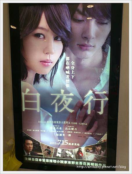 這部<白夜行>只有在台北部分戲院才有上映因為這樣只好衝去台北看了,台北絕色影城(西門町六號出口),台北國賓影城才有上映,並不是全台都有所以要去追電影也要大老遠的跑去,希望以後電影公司可以南北各一場。東野圭吾寫的白夜行小說被翻拍了很多種類型的影片像是韓國電影,日劇,推理小說,日影,雖然說描述的手法不同不過主軸還是一小說為主,之前有看過白夜行的人才會來看這日本電影版,不過這部點影版會讓大家感覺很不太一樣。