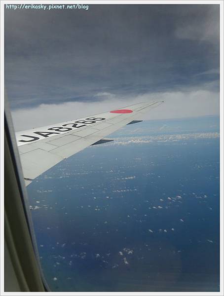 往窗外一看自己已經在三萬英尺的高空上,天氣真好。