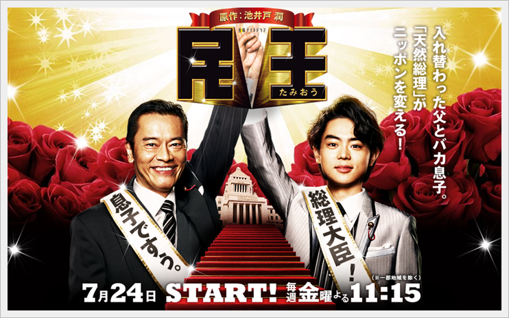 簡介:電視劇「民王」,翻拍日本小說家「池井戶潤」創作的政治小說同名「民王」,描述總理大臣武藤泰山和自己就讀大學的兒子武藤翔交換了身體,兩人各自進入了互相的生活圈,翔對於從政沒特別的興趣並且漢字也不是很熟,另一邊的總理大臣泰山,由於進入到兒子身體中,也發現了些人民生活間的細節。