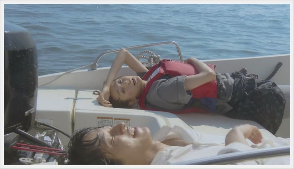 夏向帶美咲開船出去玩,說是給她的獎勵,說是要給她看東西,結果是躺著的邱比特(島嶼),美咲就說就是要給我看這個?而穿著救生衣的美咲,一定會有被推下海的觸發事件,這拍攝怎拍的感覺有困難度,真是好奇呢!