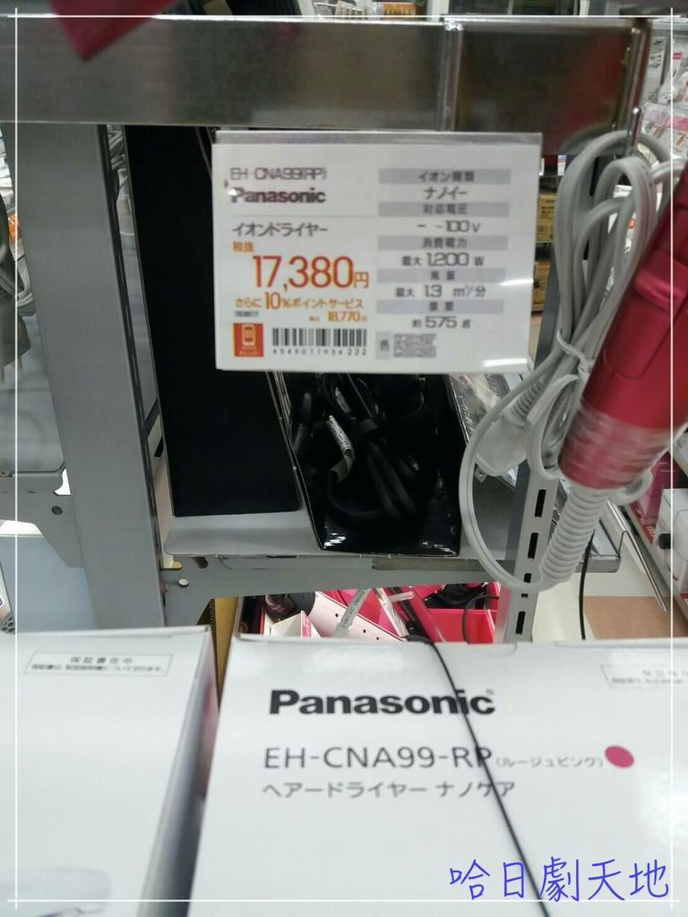 這次來日本終於帶走第一台家庭電器,就是這台最新型2017年版本的 Panasonic EH-NA99 ,這吹風機的主要特色它會偵測你頭髮的密集度調整出風溫熱模式為頭髮帶來良好的頭髮光澤,使用全新型的吹嘴通過集中並且增大風力快乾性能提高了大約15%(根據製造商的評估標準)。吹出口出來的負離子水分微粒名叫做“nanoei”,含有約1000倍(體積比)以上的,微粒離子滲透頭髮並賦予水分。我覺得主要還是好吹快乾深受我喜愛,之前家人帶了97回來真的是頗好用的,因此這次去日本買一台來吹看看囉!