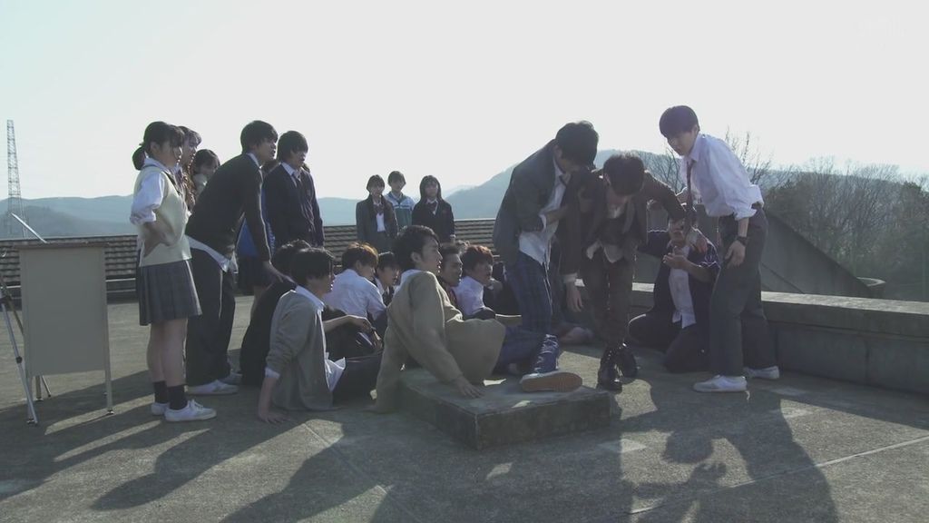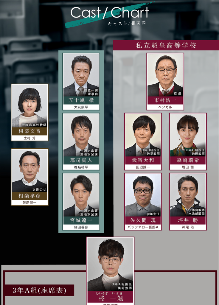 【劇情介紹】:距離畢業前十天,外表不起眼的美術教師、同時也是3年A班的班導師柊 一颯 (菅田將暉 飾)為了解開在幾個月前某位學生自殺的謎團,將班上的29名同學集合起來,宣布「從現在起,大家都是我的人質」;隨後便引爆炸彈綁架全班,並將所有人關在校舍內,亦規定在真相無法水落石出之前,誰都不能從這裡畢業;而突如響起的爆炸聲伴隨著眾人的嘩然聲,罪犯教師與人質學生的最後一堂課就此即將展開(WIKI)