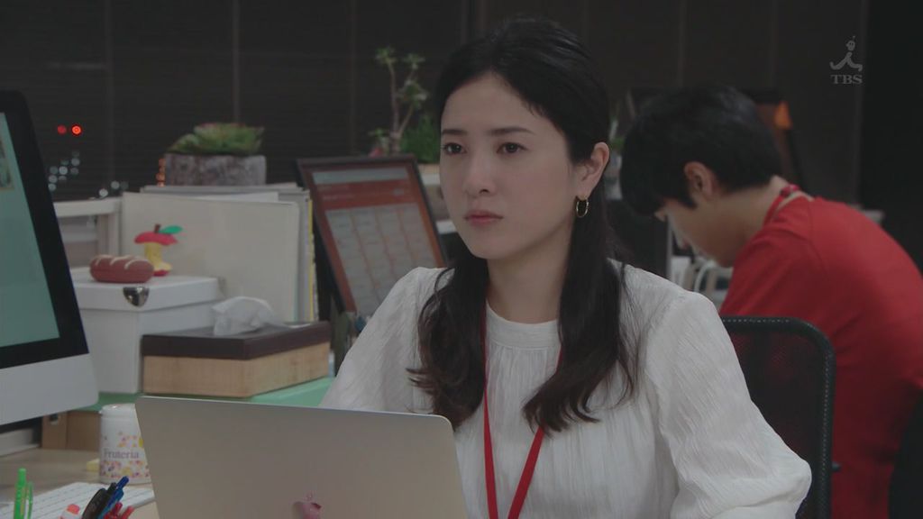 隨著專案的逼近,大家最後妥協加班,結衣也不例外,看到父親的下屬去世跟爸爸聊了一下,爸爸建議她直接對上面的社長搬救兵,來拯救這個燙手的專案,日劇很愛用這種熱血的橋段,但我相信現實生活中能成功的機率應該很低吧。
