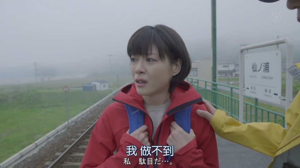 跟父親搭了很長的車程到達車站後,女主角開始心神不寧擔憂了起來,開始出現回憶錄,而場景就是2011年的311大地震,過了八年題材還是持續使用.朝顏深厚的「仙ノ浦車站」是電視台虛擬的名子,這車站的真名是「甫嶺駅」