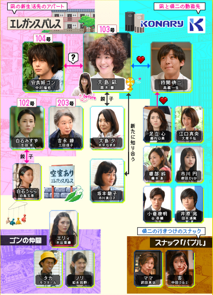 演員:黑木華 、高橋一生、中村倫也、市川實日子、 瀧內公美、大塚千弘、唐田英里佳、 片平渚、吉田羊、三田佳子