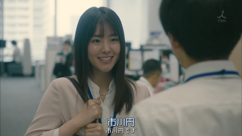 看到背影很像凪,結果是新調來的同事「市川円」,竟然有人叫做「元」哈哈哈,這位女生在第一集中短暫出現過,她叫做唐田 えりか(唐田英里佳),看後續的進度條,可能是來做競爭者。