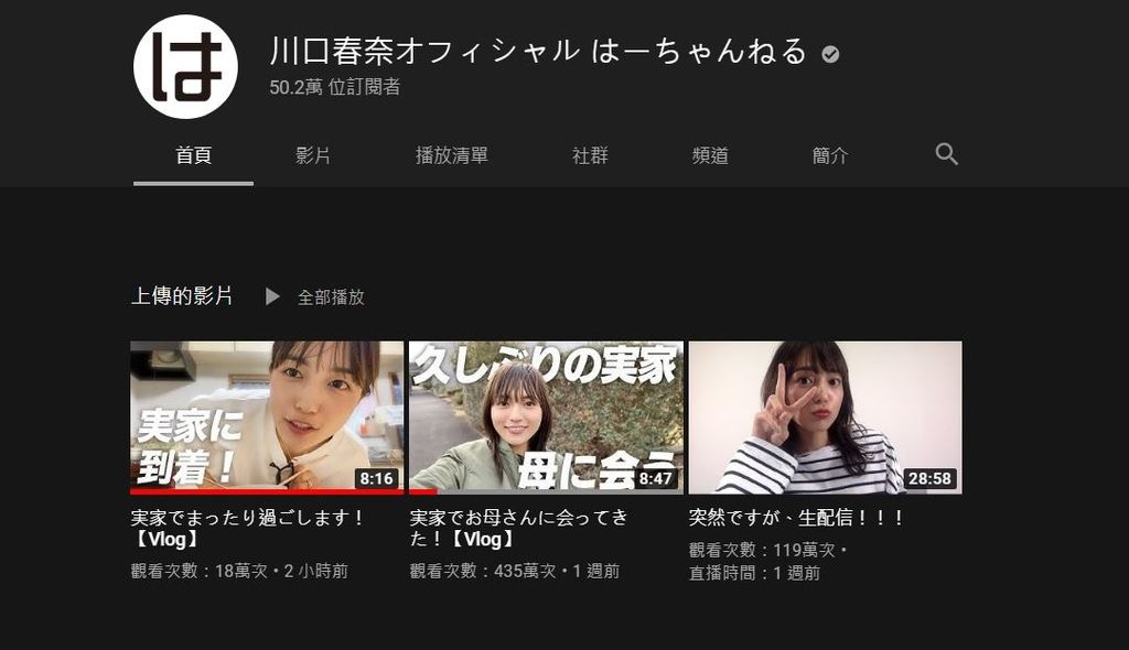川口春奈youtube頻道 https://www.youtube.com/channel/UCHi5HD9w9B-gI6Lbx43Rs7A