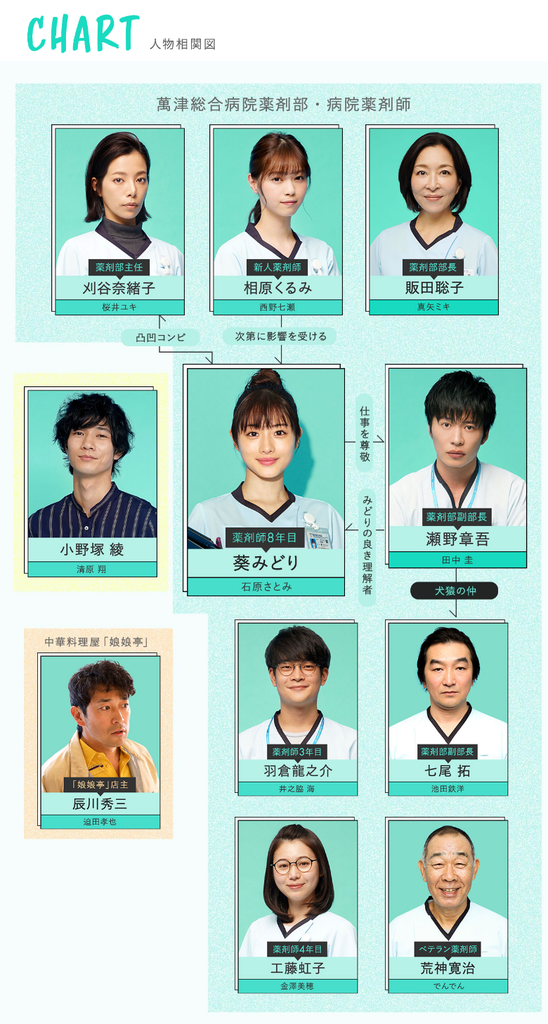 【簡介】: 以藥劑師為題材的醫療劇,描畫在綜合醫院工作的藥劑師葵綠認真僅慎對待患者健康的相關用藥的處方的模樣。以醫院藥師主角和藥劑部的成員為中心,面對醫生、護士、外部藥劑師等與醫療有關的角色之間的問題。“藥物有助於患者的未來生活,因此有必要瞭解患者本身。對於藥劑師來說,這比什麼都重要”。