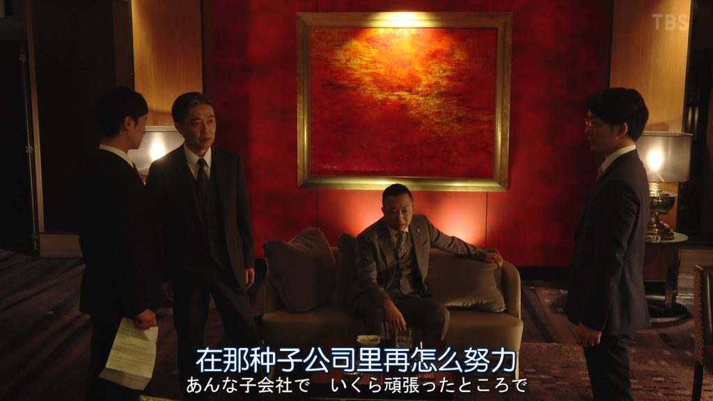 這種收購感覺就是有問題,跟第一季一樣用很快的速度放貸給客戶(這次是馬上答應收購),最後倒掉和失敗都是半澤的錯誤,蠻好用的耶XD,我覺得這邊演的好刻意,這種刻意的放款的感覺,是怕別人認不出來你心中在想什麼逆