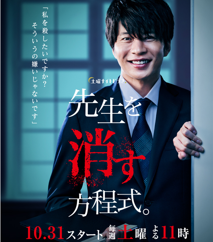 劇情:田中圭主演《消除老師的方程式》(先生を消す方程式。)公開恐怖學生的角色,他們都是精英所在3年D班的學生,班內大部分學生一直玩著精神虐待班主任讓對方辭職的遊戲,但今次面對義澤經男(田中圭)行動升級,打算取其性命。